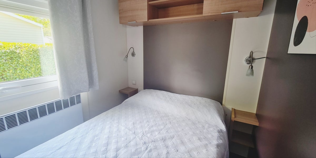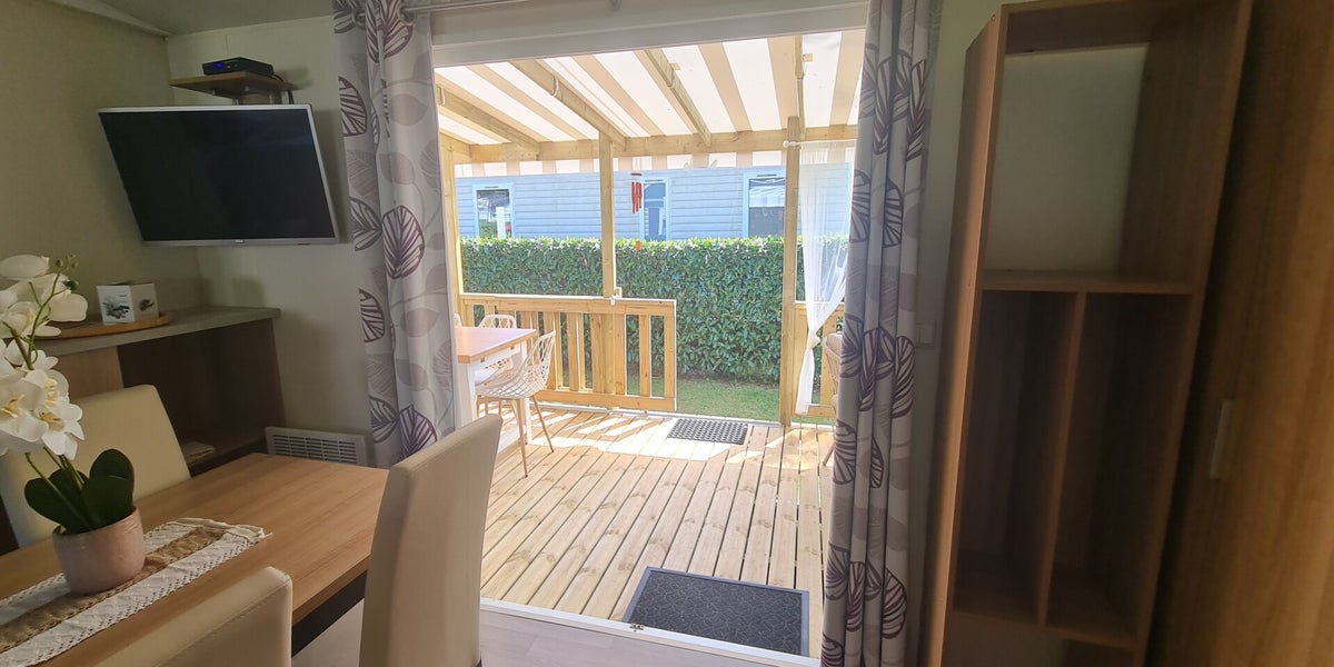 - Le mobil-home BORA BORA climatisé est composé de 3 chambres et d'1 salle d'eau avec une terrasse couverte d'une capacité de 8 personnes max.